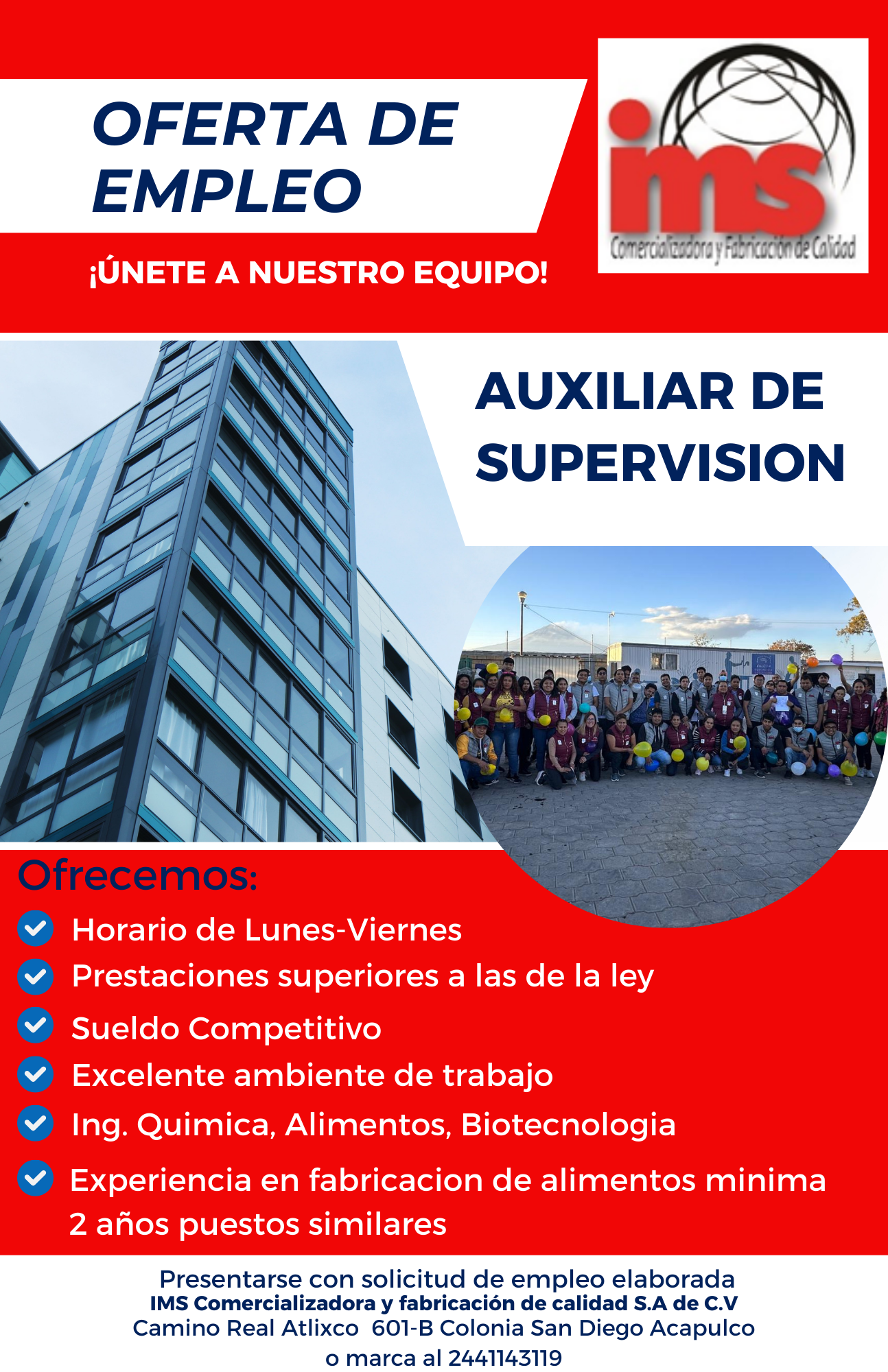 Vacante Auxiliar de Supervisión - EMPRESA IMS COMERCIALIZADORA EN ATLIXCO (septiembre 2025)