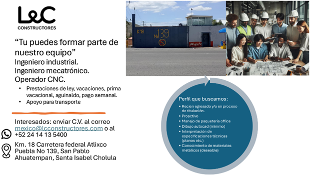Vacante Responsable de Mantenimiento-EMPRESA IMS COMERCIALIZADORA EN ATLIXCO (septiembre 2025)
