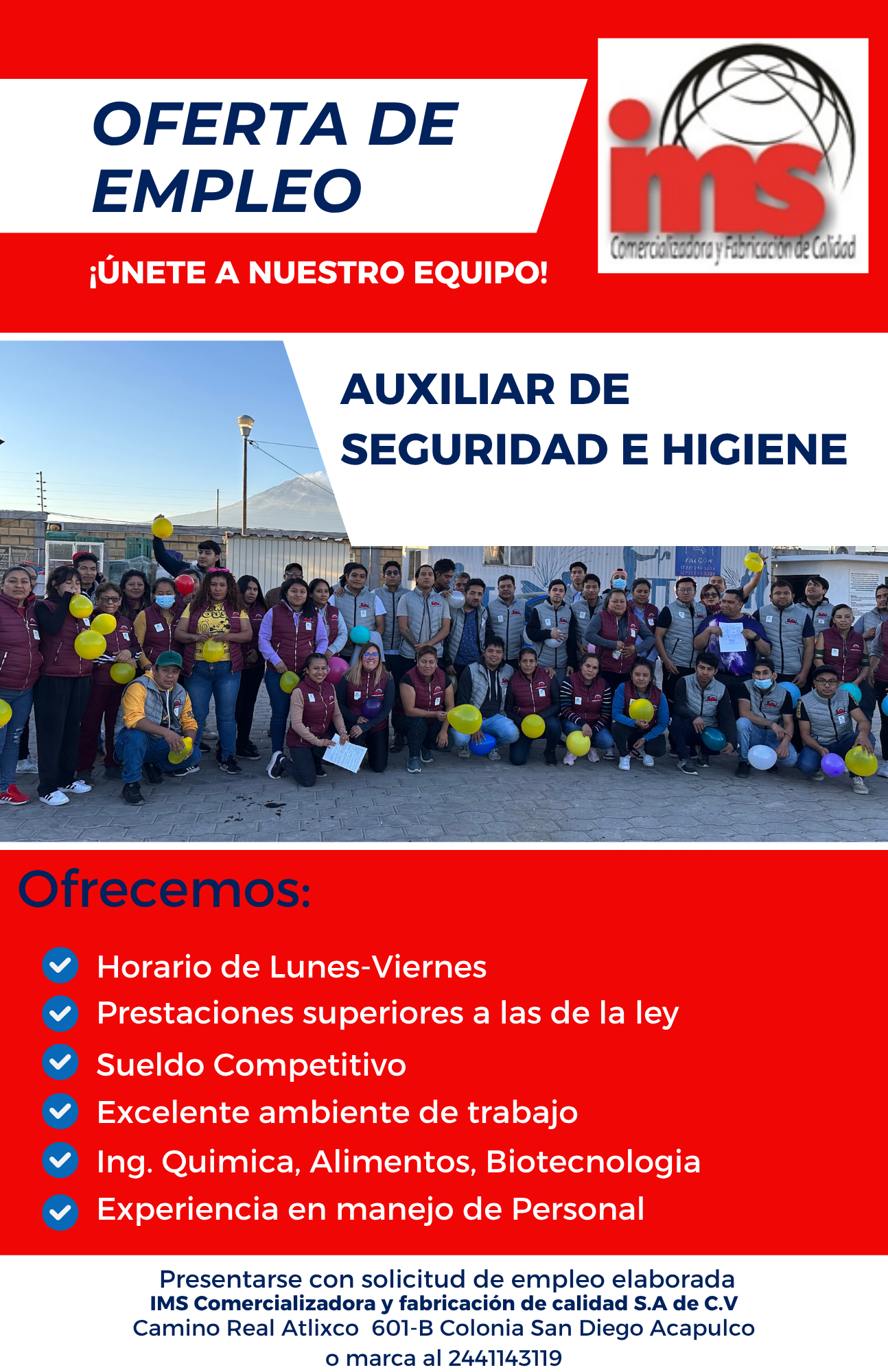 Vacante Auxiliar de Seguridad e Higiene - EMPRESA IMS COMERCIALIZADORA EN ATLIXCO (octubre 2025)