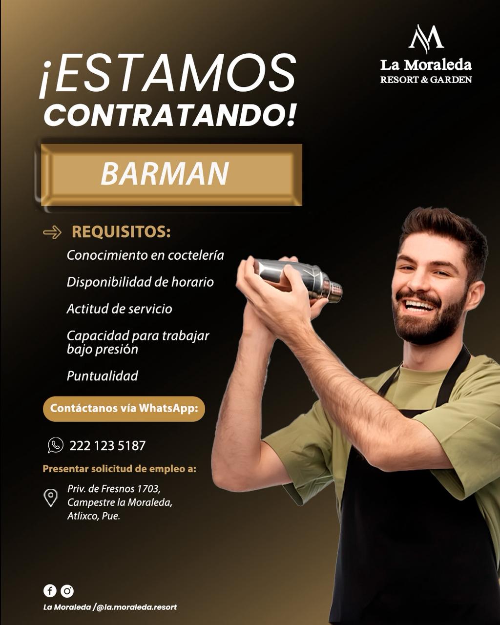 Vacante Barman - Moraleda Resort (octubre 2025)