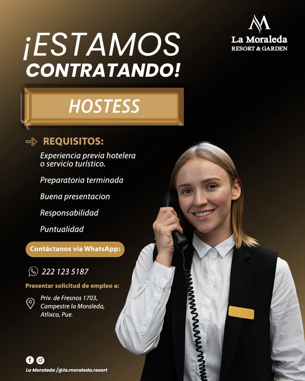Vacante Hostess - Moraleda Resort (octubre 2025)